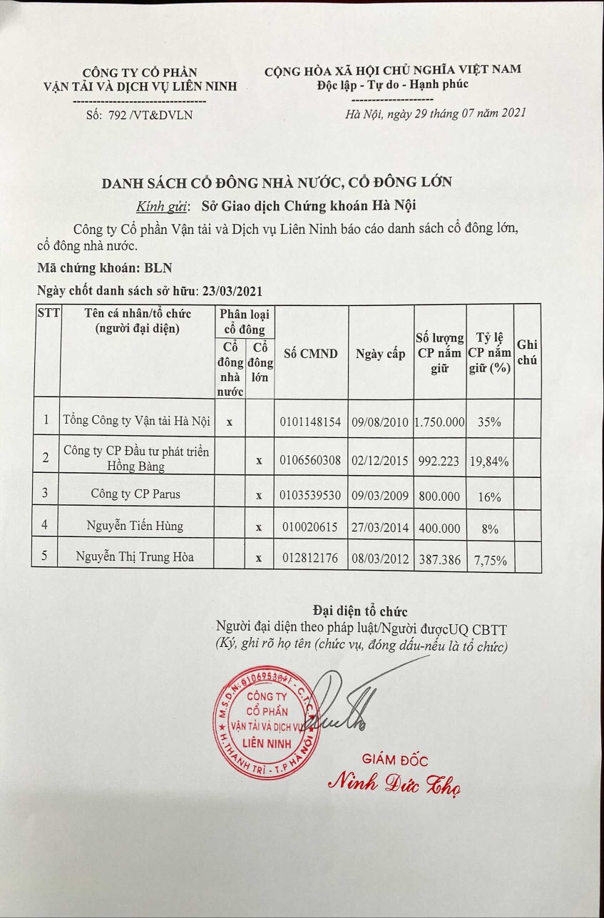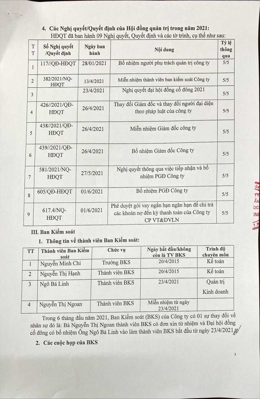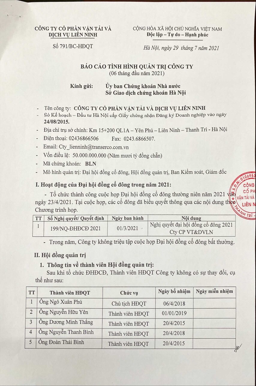 Báo cáo tình hình quản trị Công ty (6 tháng đầu năm 2021) và danh sách cổ đông lớn, cổ đông nhà nước