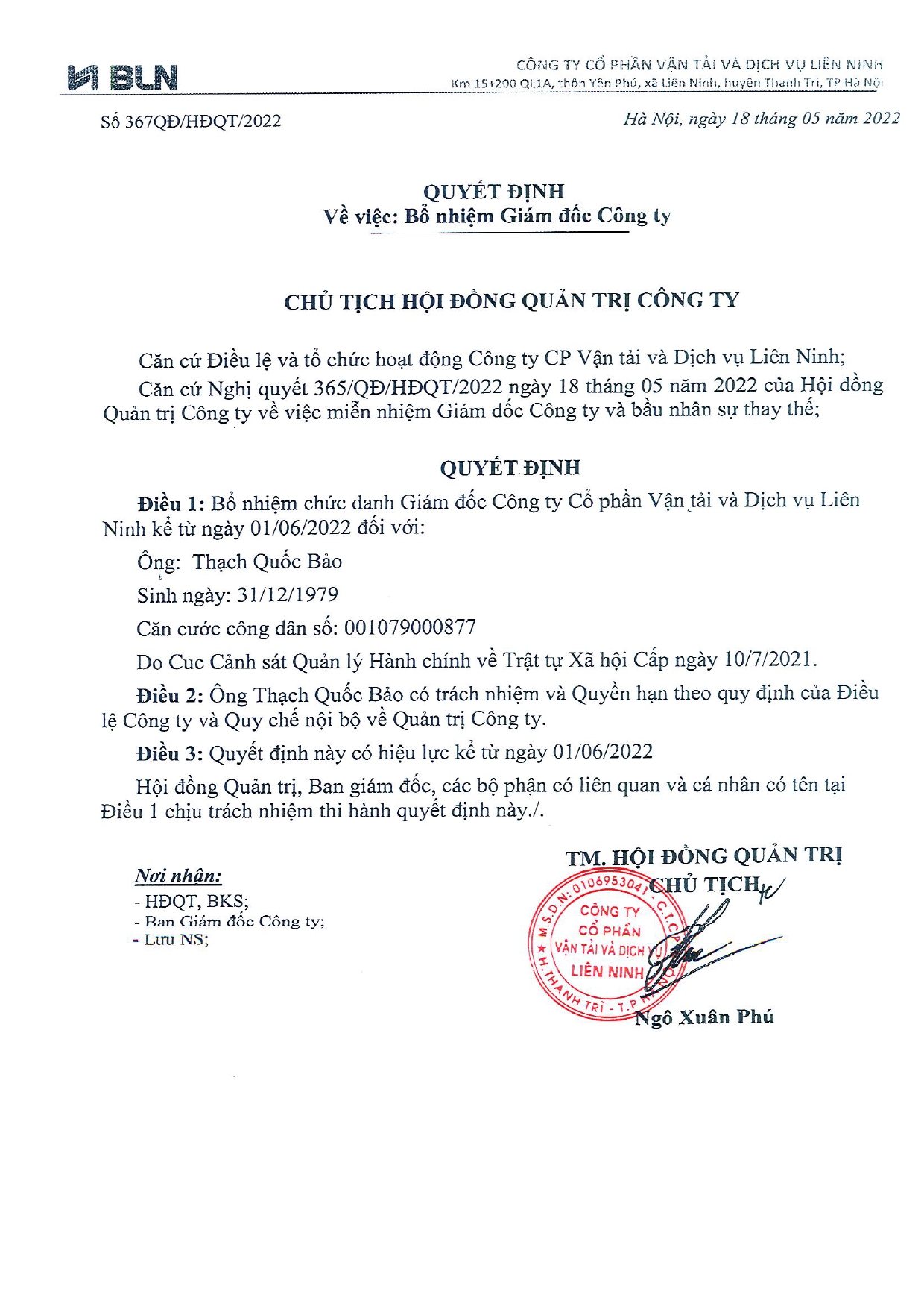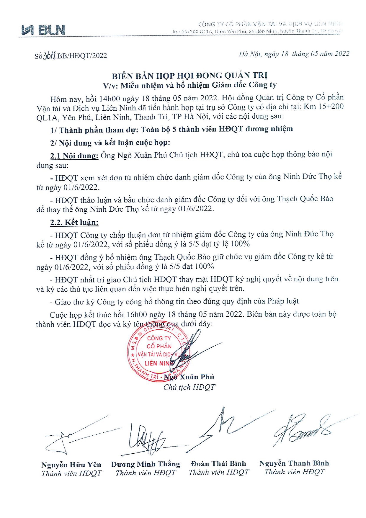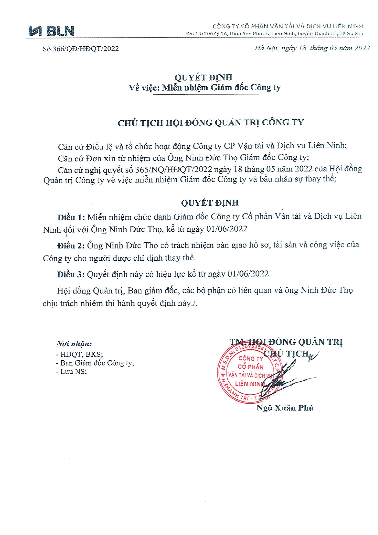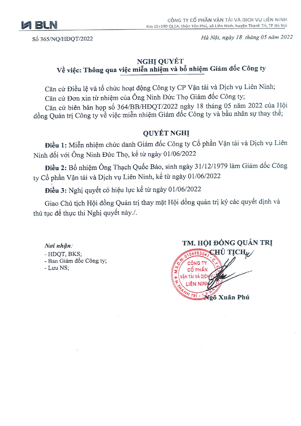 Nghị quyết V/v: Thông qua việc miễn nhiệm và bổ nhiệm Giám đốc Công ty
