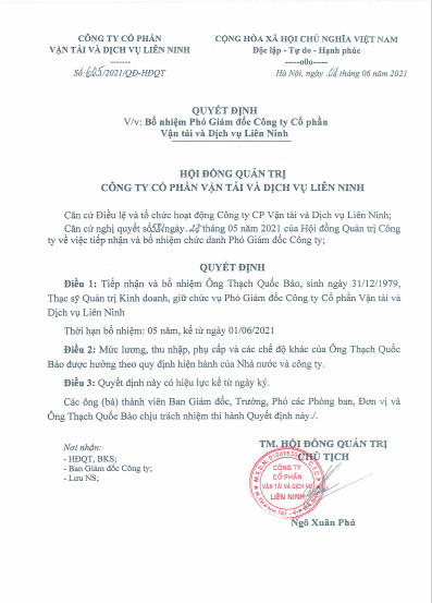 Quyết định bổ nhiệm Phó Giám đốc