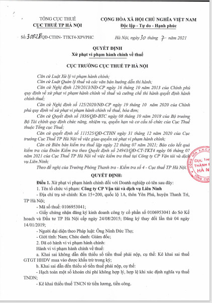 Quyết định : Xử phạt vi phạm hành chính về thuế