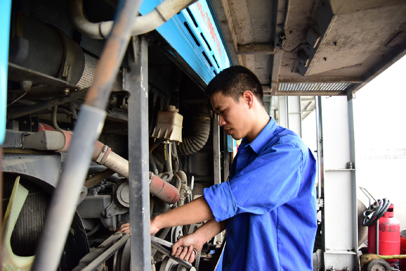 Mỗi chiếc xe buýt sau khi kết thúc một ngày vận hành đều được kiểm tra, bảo dưỡng kỹ thuật